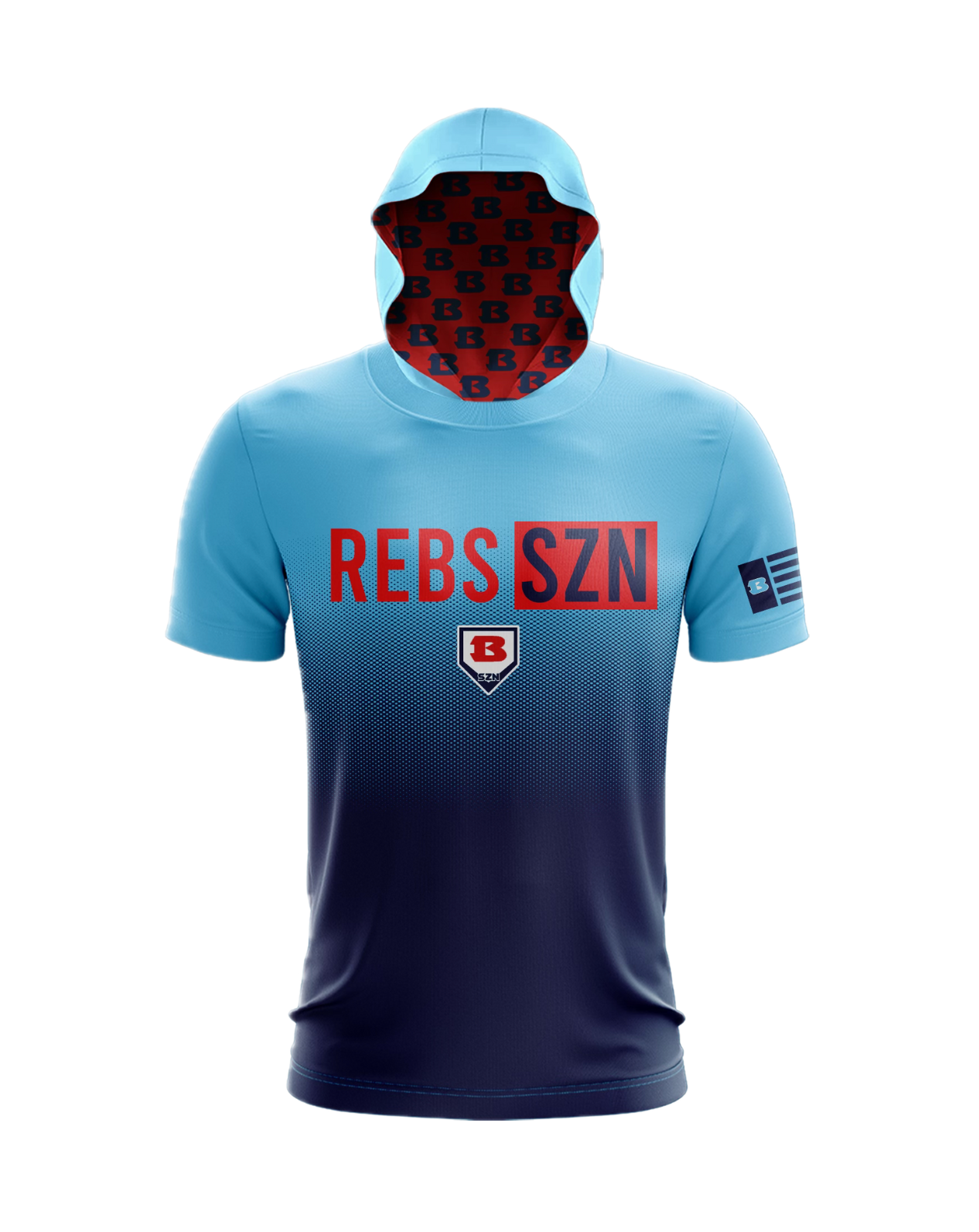 This lightweight hoodie features a blue to navy gradient and standout "REBS SZN" lettering across the chest and home plate underneath and flag on the sleeve. Perfect for game day wear!